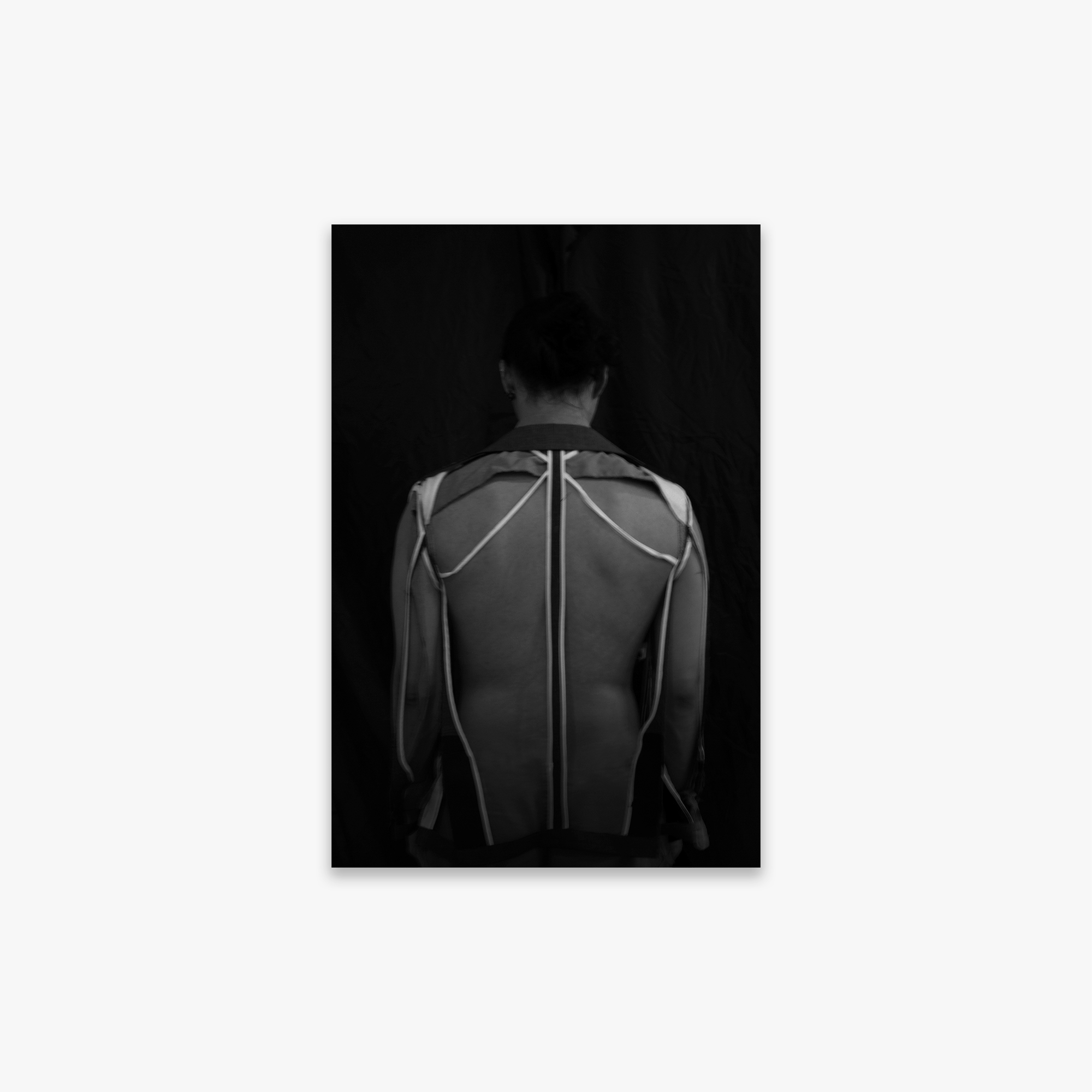 샤갤러리 전시에는 설치작업에서 파생된 사진 작업을 선보입니다. 설치 작업의 오브제인 의류의 재봉선을 모델에게 입히고 특정 포즈를 취하게 한 그 이미지를 사진으로 남긴 작업들입니다. 의류의 면천을 뜯어내어 드러난 인체의 모습은 외면을 제거하여 나타난 내면을 상징합니다. 그래서 이 이미지들은 우리들이 감추고 싶은 내면들을 들추어낸 모습들이라고 할 수 있습니다.