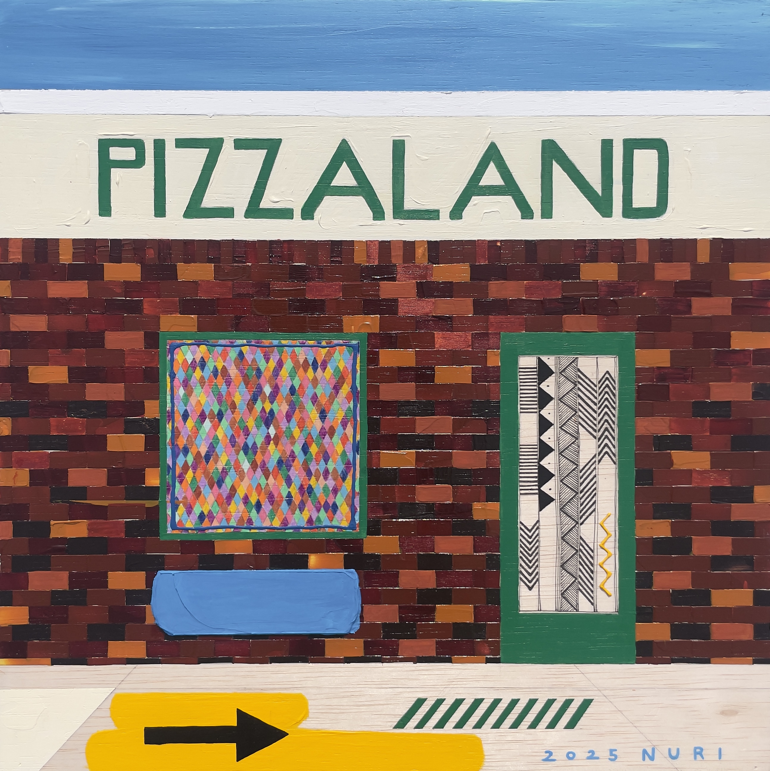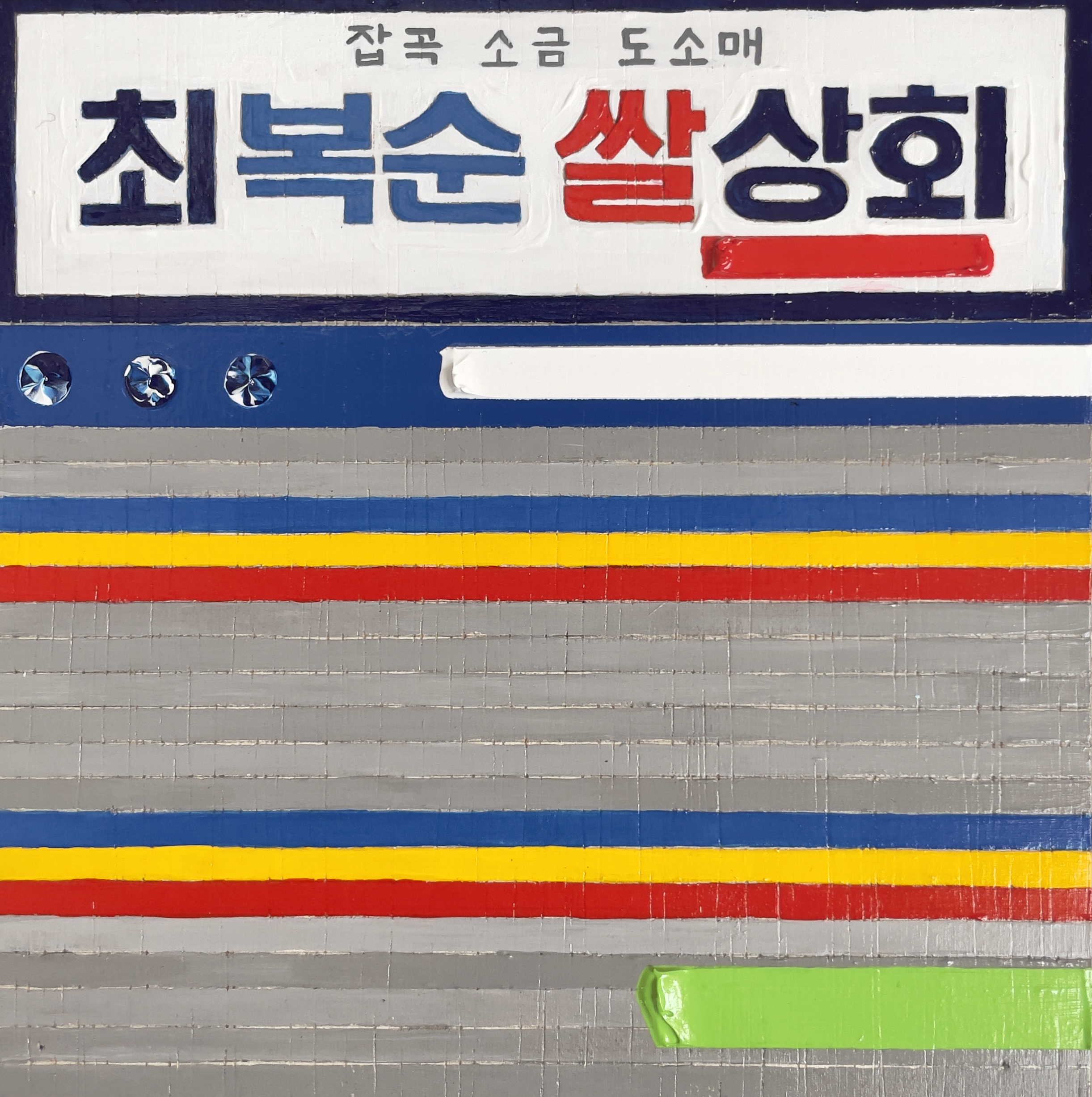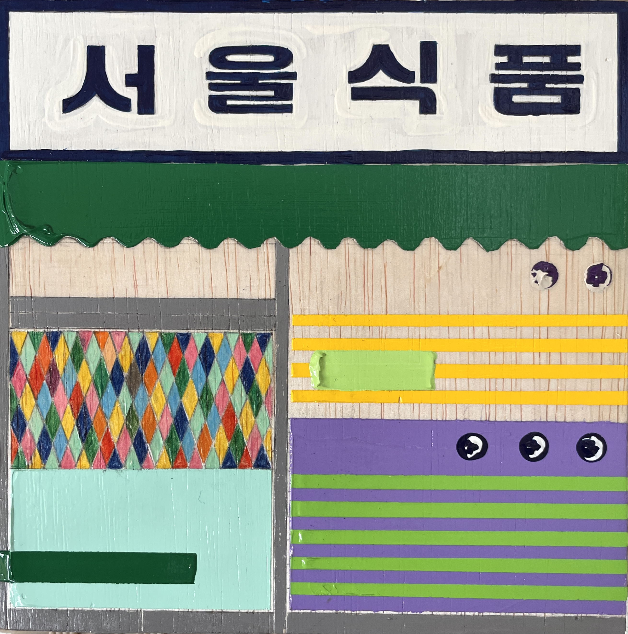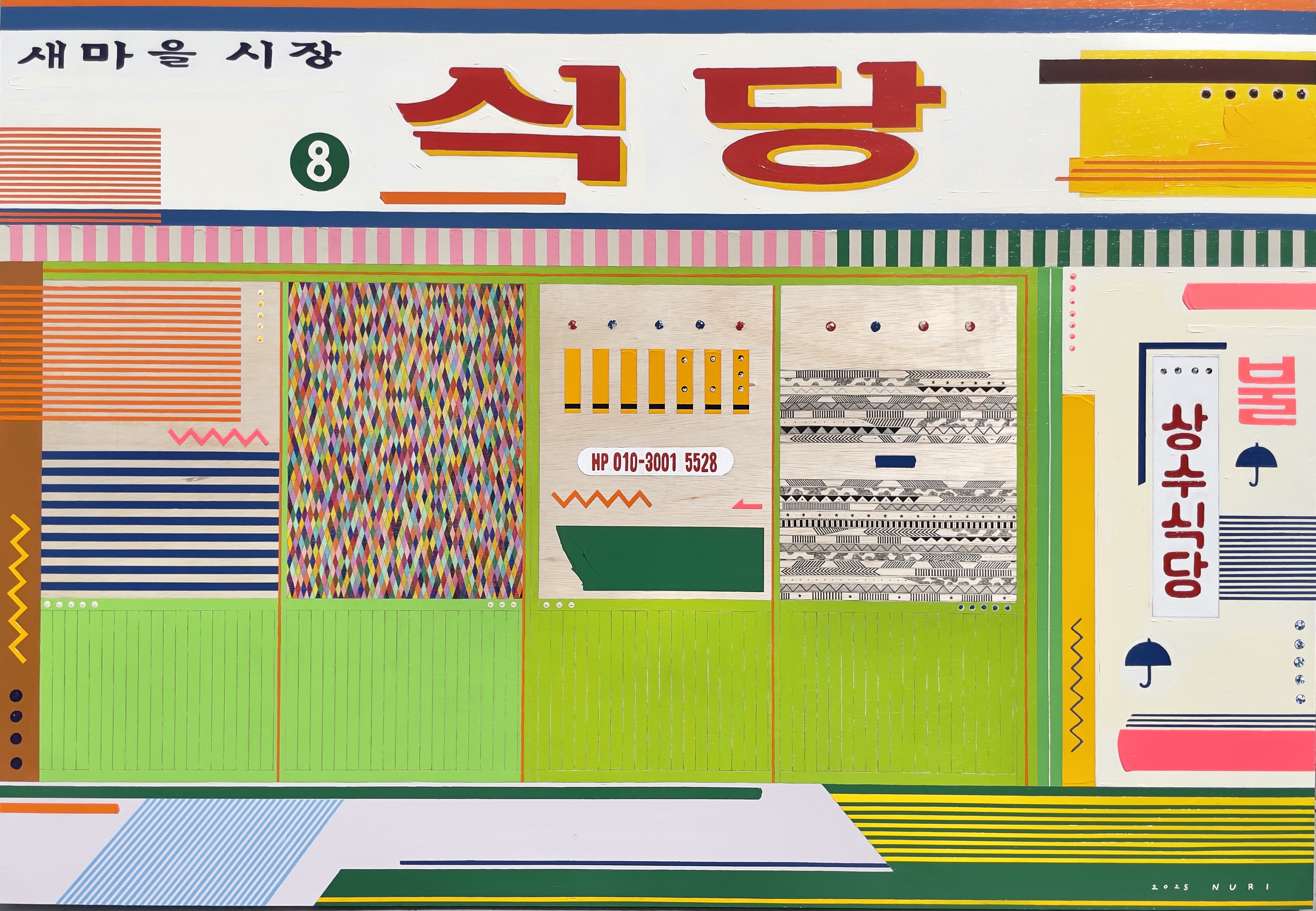 아크릴 기반의 작업이지만 마스킹 테이프를 함께 사용하여 화면을 구성한다.